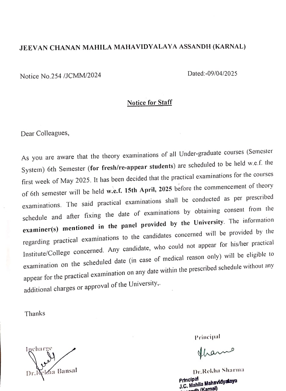 09/04/2025 Practical Schedule for Fresh/ Reappear Students of UG 6th Sem.